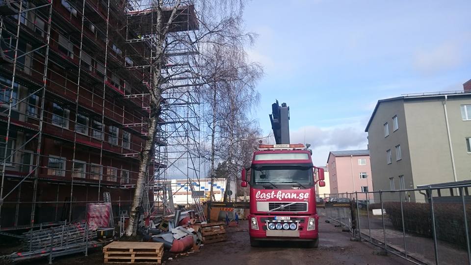 Bland våra kranbilar har vi en på upp till 37 tm och dessutom lastväxlare med olika flak.